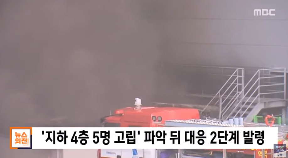 소방당국에서는 용인 물류센터 화재 신고 접수 10분후인 오전 8시39분, 해당지역 관할 소방서 인원 전체가 화재진합에 출동하는 경보령인 '대응 1단계'를 발령했다고 합니다.